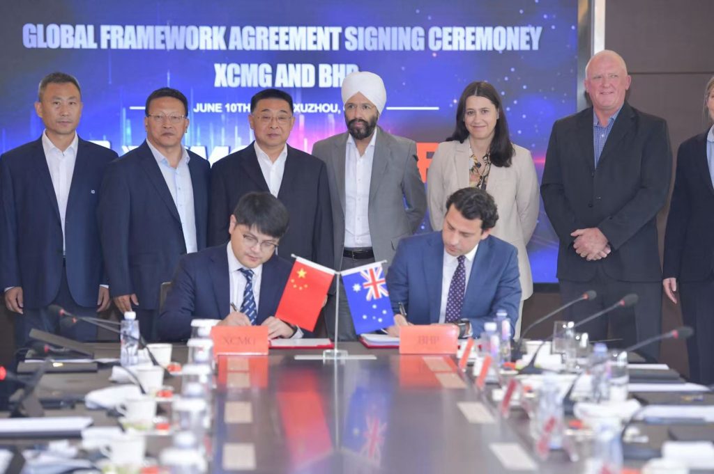 Em um passo ousado para redefinir o futuro da mineração sustentável, a XCMG — principal fabricante chinesa de equipamentos de construção e mineração — assinou um acordo histórico com a gigante global BHP em 10 de junho, na sede global da XCMG em Xuzhou. O acordo sinaliza um novo capítulo de colaboração estratégica focada no avanço de tecnologias de mineração verdes e inteligentes e representa um marco significativo na evolução das parcerias internacionais de mineração.
